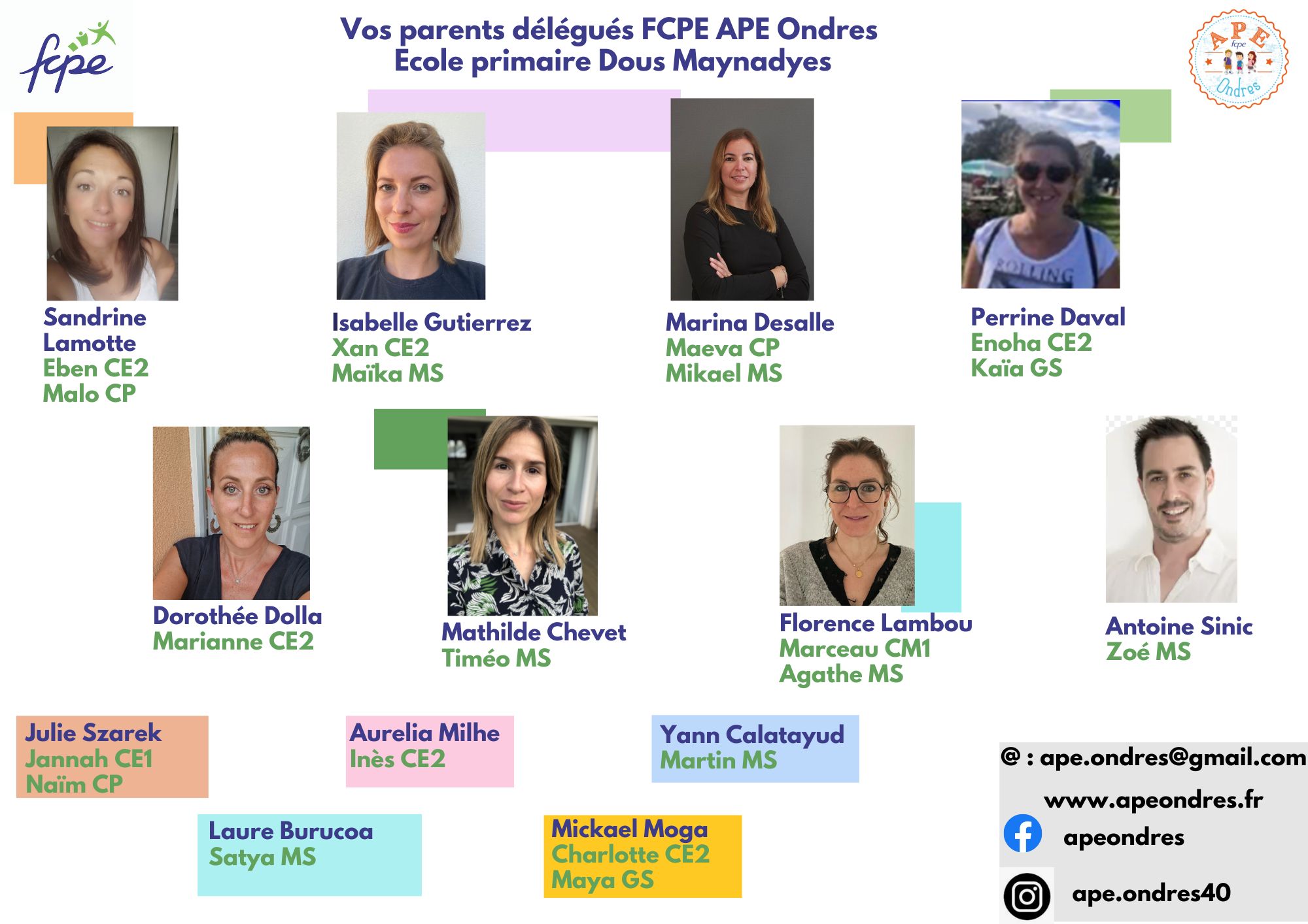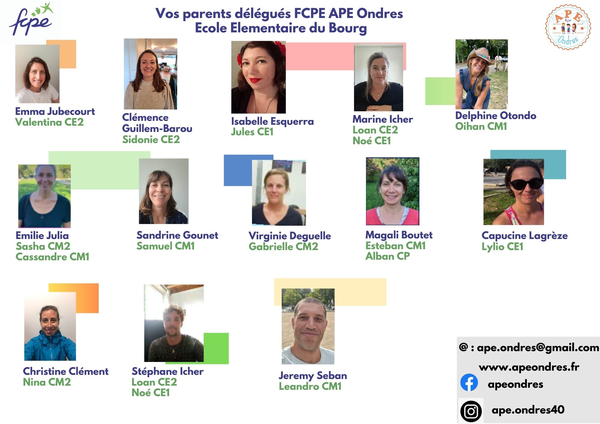 Suite aux élections du élections du 13 octobre dernier, vous trouverez ci-dessous les parents élus dans chaque école – ainsi qu’un trombinoscope pour les identifier plus facilement!