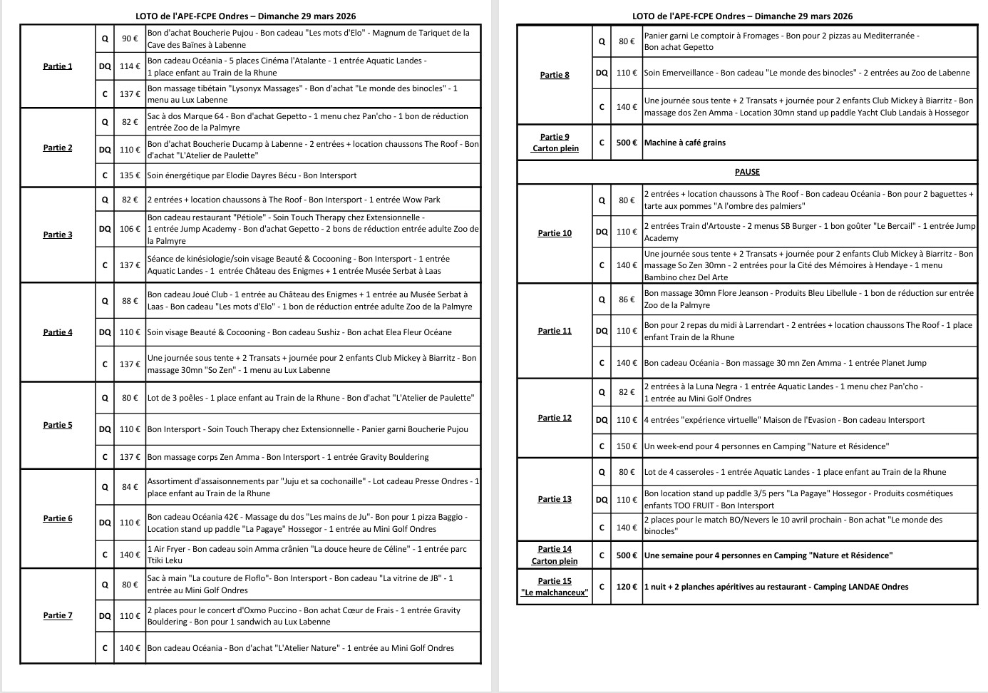 Casetas: chaque année, les associations ondraises vous donnent rendez-vous sur le fronton pour un moment convivial. Les parents de l’APE-FCPE tiendront un stand burger et une buvette. Les bénévoles sont les bienvenus dès vendredi après-midi et jusqu’à la fermeture – n’hésitez pas à vous inscrire!